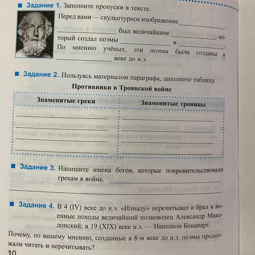 1. Перед вами - скульптурное изображение Гомера. Гомер был величайшим поэтом, который создал поэмы "Илиада" и "Одиссея". По мнению учёных, эти поэмы были созданы в VIII веке до н. э.