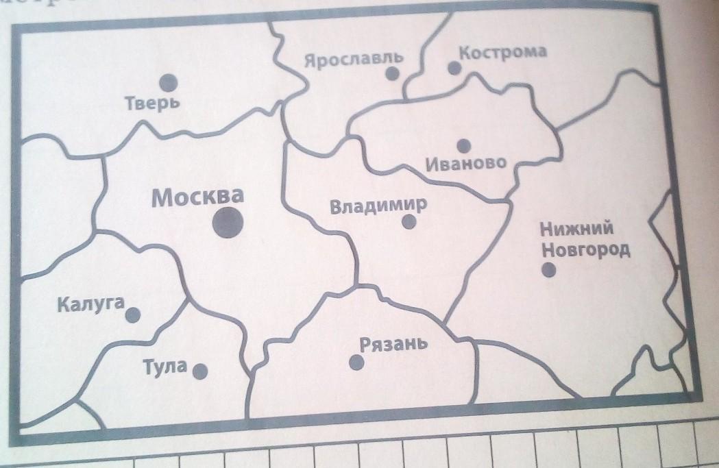 На рисунке изображен фрагмент карты России. Расстояние между Владимиром и Рязанью 170 км. Сколько приблизительно километров между Нижним Новгородом и Костромой?