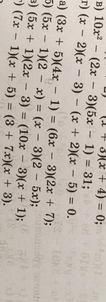 4) (5x - 1)(2 - x) = (x - 3)(2 - 5x)