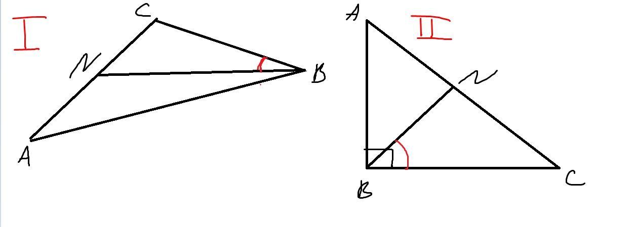 В треугольнике АВС точка N– середина стороны АС, . Выполните чертёж. Найдите угол NВС. Укажите чем является отрезок ВN (два случая названия) для треугольника АВС.