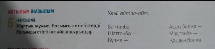 баптан; шаттан; күл; асық бол; мақтан; қашық бол.