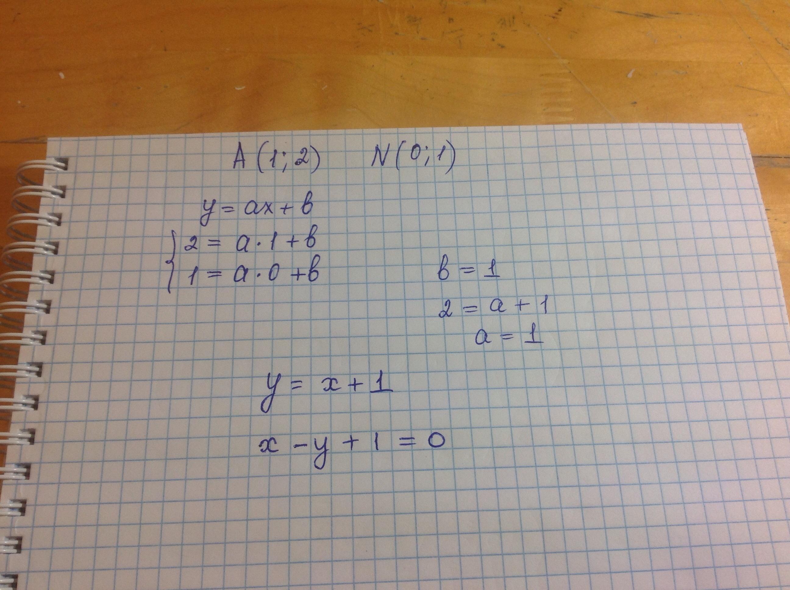 На данной прямой находятся точки A(1;2) и N(0;1). Напиши уравнение этой прямой. (Если коэффициенты отрицательные, вводи их вместе со знаком «−», без скобок.)