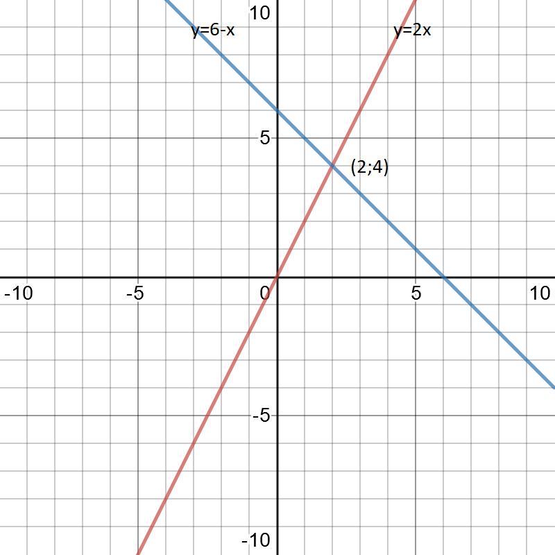 {y=6-x== > {2x=6-x == > {3x=6 == >{ x=2