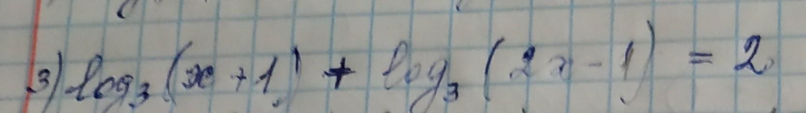 log_3(x+1)+log_3(2x-1)=2\ \ , \ \ ODZ: x\in(\dfrac{1}{2};+\infty)\\\\\\log_3\Big((x+1)(2x-1)\Big)=2\\\\\\log_3(2x^2-x+2x-1)=2\\\\\\2x^2-x+2x-1=3^2\\\\\\2x^2+x-1=9\\\\\\2x^2+x-1-9=0\\\\\\2x^2+x-10=0\\\\\\D=1+4*2*10=81=9^2\\\\\\x_1=\dfrac{-1-9}{4}=\dfrac{-10}{4}=-\dfrac{5}{2}\ \ (\ ne \ \ sootvetstvuet\ \ ODZ\ )\\\\\\x_2=\dfrac{-1+9}{4}=\dfrac{8}{4}=2\\\\\\\boxed{Otvet:\ x=2}