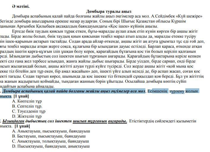Домбыра аспабының қалай пайда болғаны жайлы аңыз әңгімелер аса мол. Есімшенің түрлену жолын