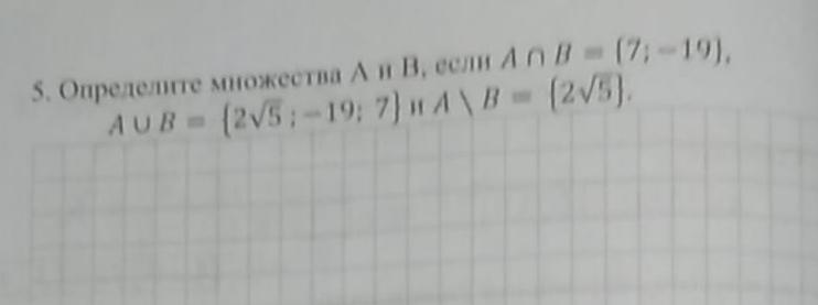 А∪В ={2√5;7; -19} - значит элемент 2√5 есть в каком-то из множеств А или В. но мы пока не знаем в каком