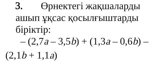 -(2.7a-3.5b)+(1.3a-0.6b)-(2.1b+1.1a)=-2.7a+3.5b+1.3a-0.6b-2.1b-1.1a=-2.5a+0.8b (или 0.8b-2.5a)