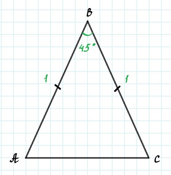 А1. Найдите площадь равнобедренного треугольника, если его боковая сторона равна 1 м, а угол при вершине равен 45о.