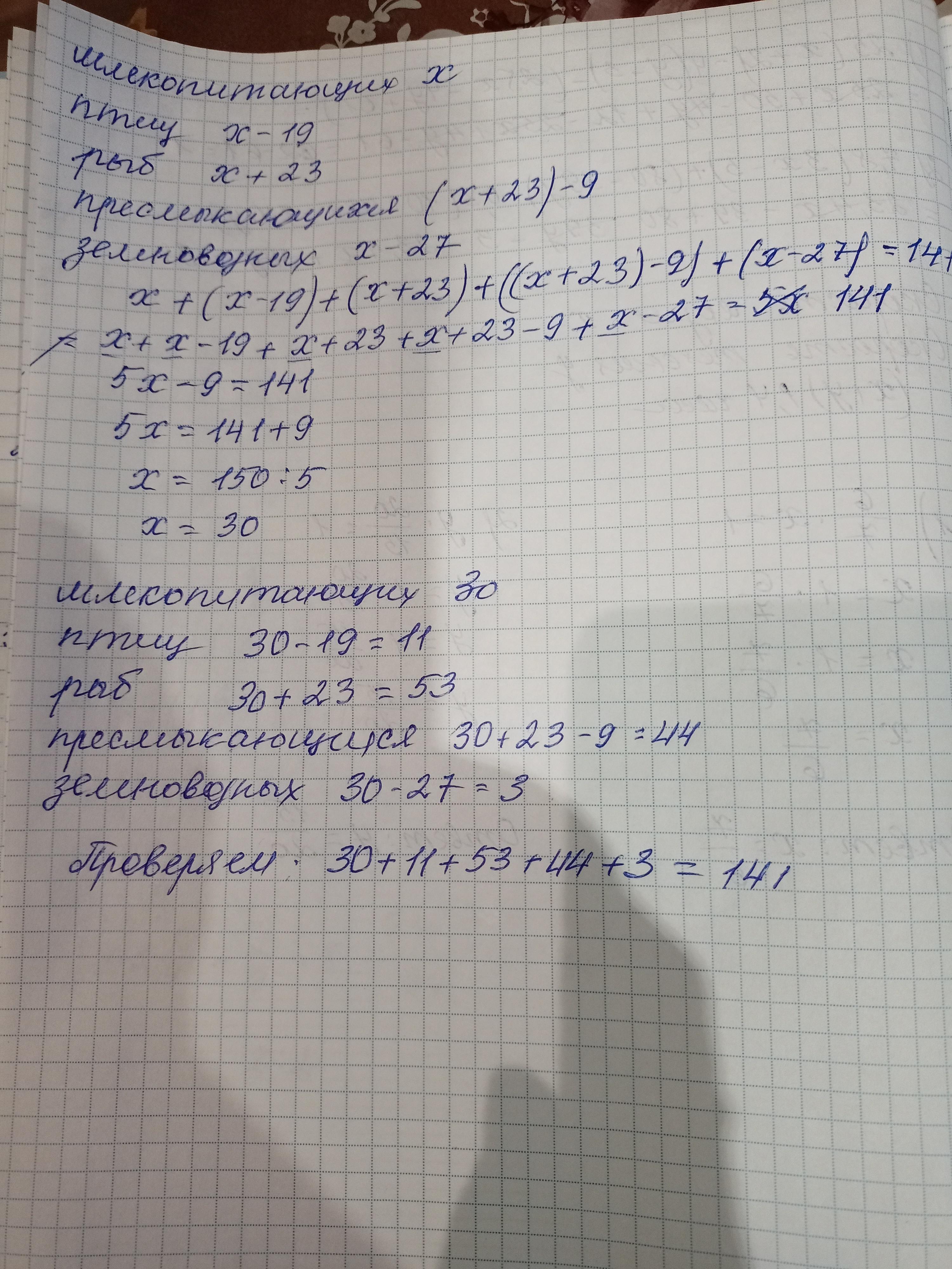 найдите количество млекопитающих, составив и решив уравнение по условию задачи.