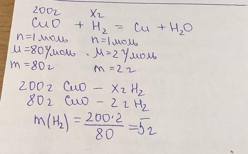 Рассчитайте массу водорода, затраченного на восстановление 200г оксида меди (II). СРОЧНО ПОЖАЛУЙСТА ОТВЕТЕТЬ НЕ ПОЖЕЛЕЕТЕ ПИРОЖОК В ПОДАРОК!