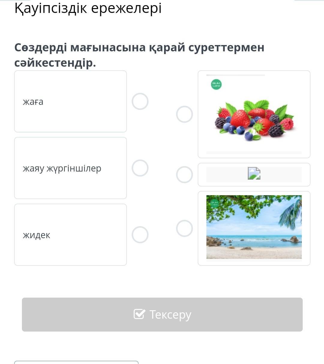 Сөздерді мағынасына қарай суреттермен cәйкестендір.