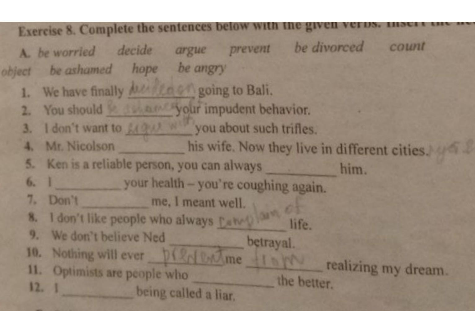 4. Mr. Nicholson be angry his wife. Now they live in different cities