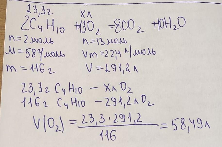 9)Вычислить объём кислорода (н.у), необходимый для сжигания 23,3 г бутана.