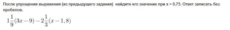 После упрощения выражения (из предыдущего задания) найдите его значение при х = 0,75. Ответ записать без пробелов.