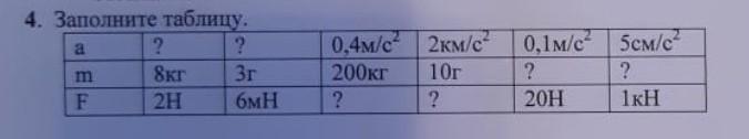 4) 2 км/с²=2*10³ м/с²