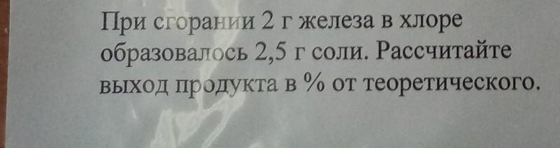 η(FeCl3) = m( прак) / m(теорет) = 2,5 г / 5,8 г * 100% = 43%