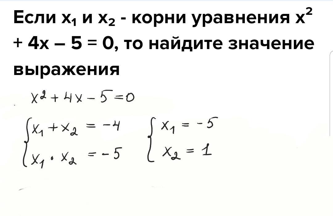 Если х₁ и х₂ - корни уравнения х² + 4х – 5 = 0, то найдите значение выражения