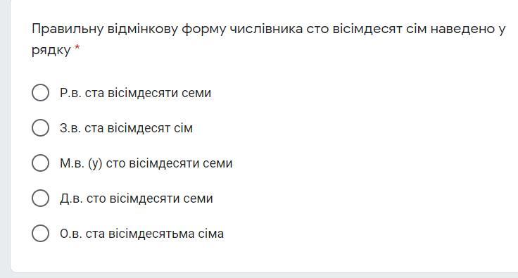 Правильну відмінкову форму числівника сто вісімдесят сім наведено у рядку: