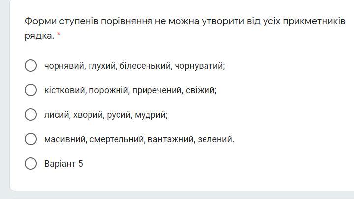 Форми ступенів порівняння НЕ можна утворити від усіх прикметників рядка