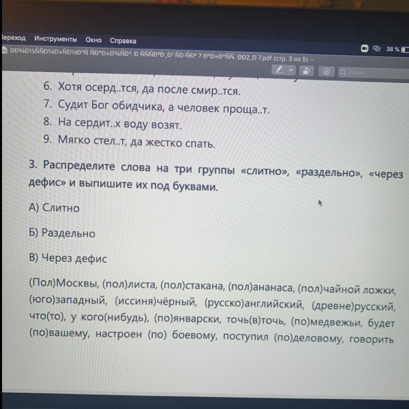 В) через дефис: пол-Москвы, пол-листа, пол-ананаса, юго-западный, иссиня-чёрный, русско-английский, что-то, у кого-нибудь, по-январски, точь-в-точь, по-медвежьи, будет по-вашему, настроен по-боевому, поступил по-деловому