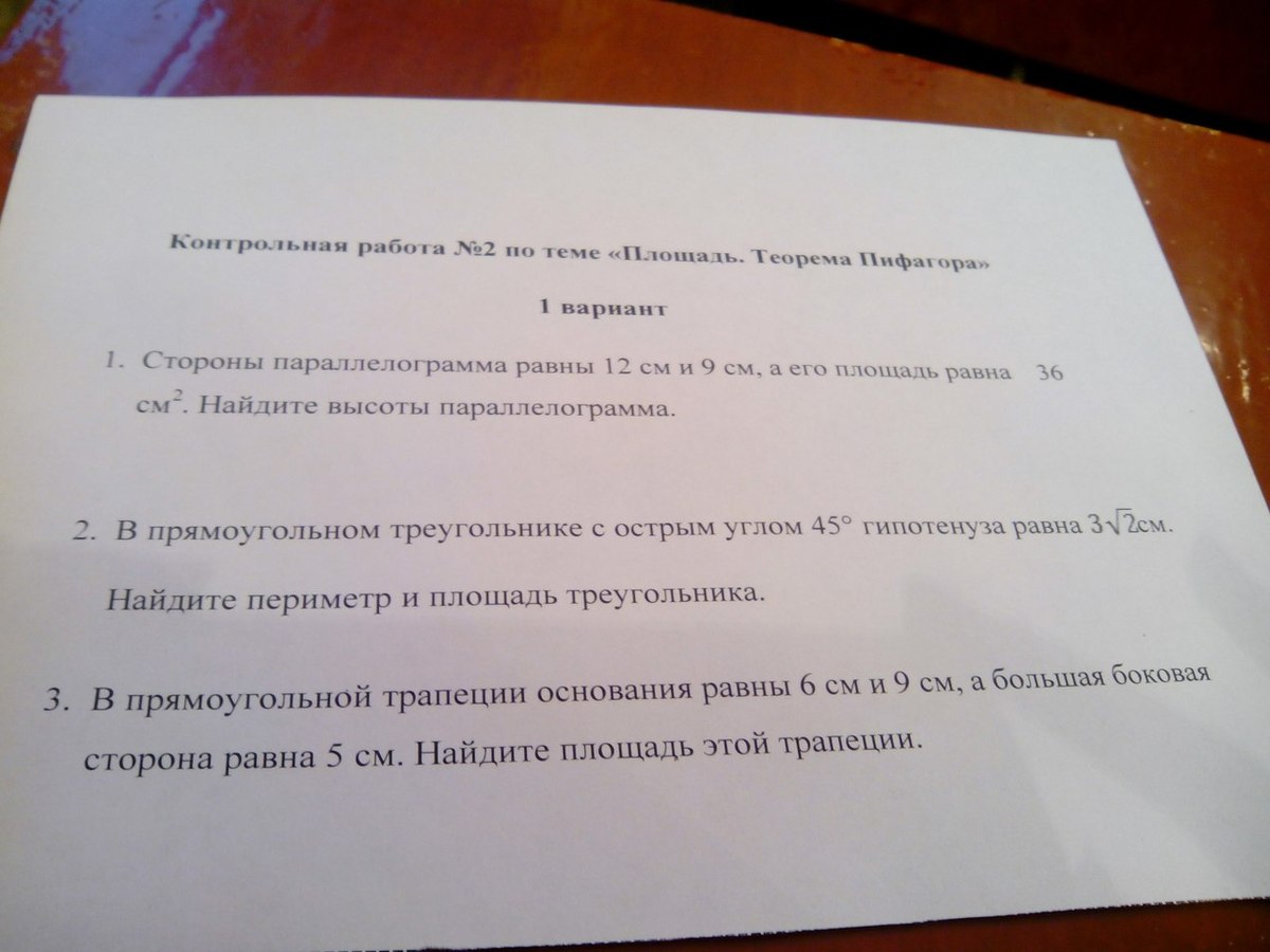 #1. Площадь параллелограмма =произведению стороны на высоту S=ah