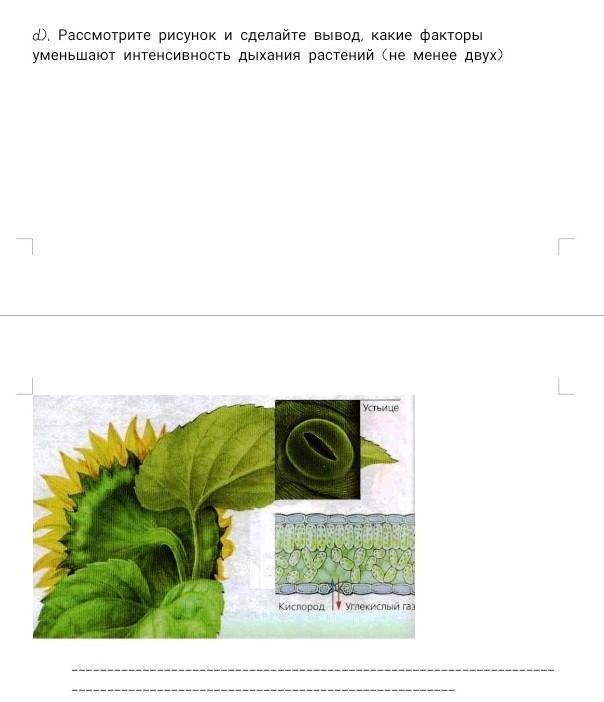 Рассмотрите рисунок и сделайте вывод, какие факторы уменьшают интенсивность дыхания растений (не менее двух)