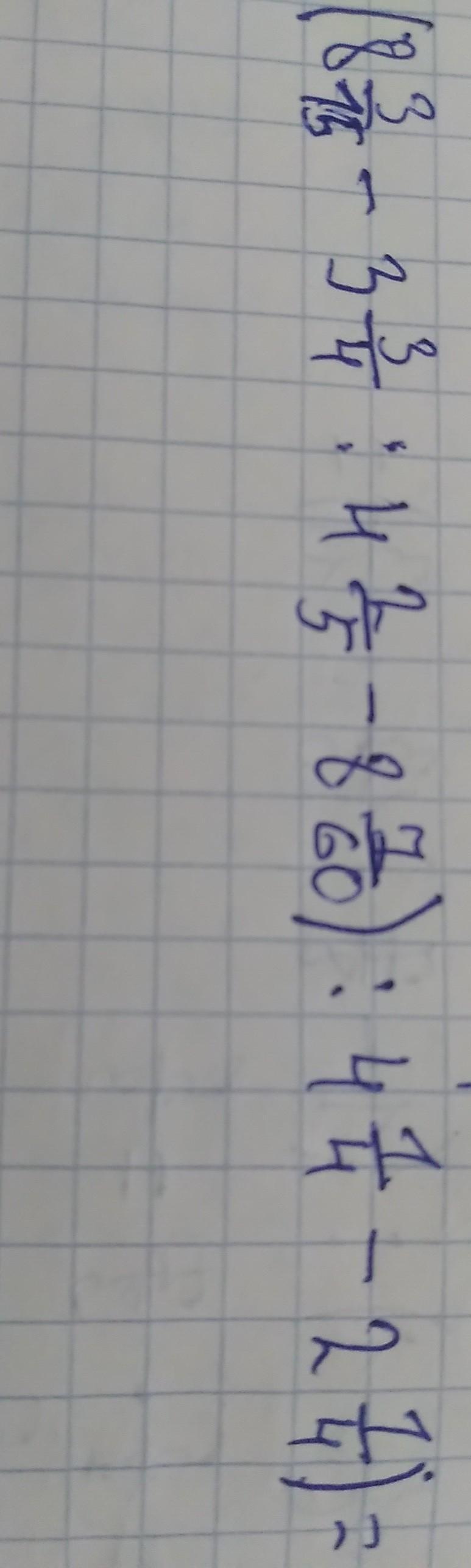 там вот так ( 8 3/15 - 3 3/4 : 4 2/5 - 8 7/60 ) : ( 4 1/4 - 2 1/4) =