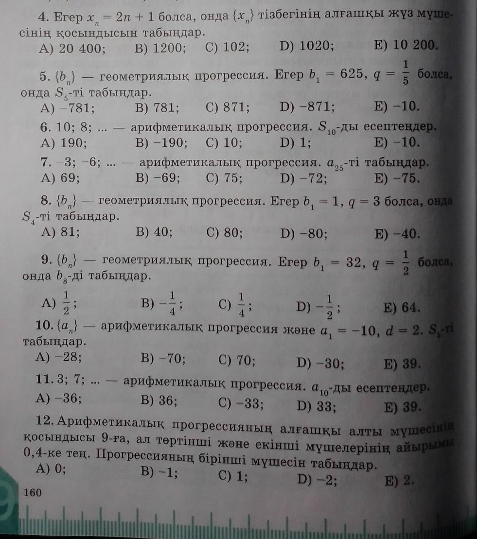 8)Берём формулу суммы первых n-ых членов геометрической прогрессии S4=b1*(q^n -1)/q-1 => S4=80/2 => S4=40 Ответ:B