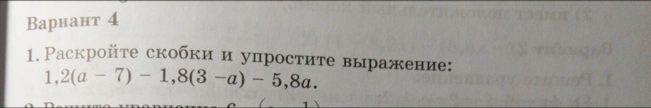 1,2(а - 7) - 1,8(3 - а) - 5,8 =