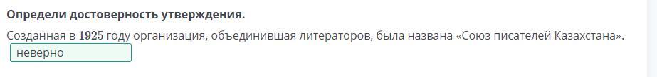 Определи достоверность утверждения. Созданная в 1925 году организация, объединившая литераторов, была названа «Союз писателей Казахстана».