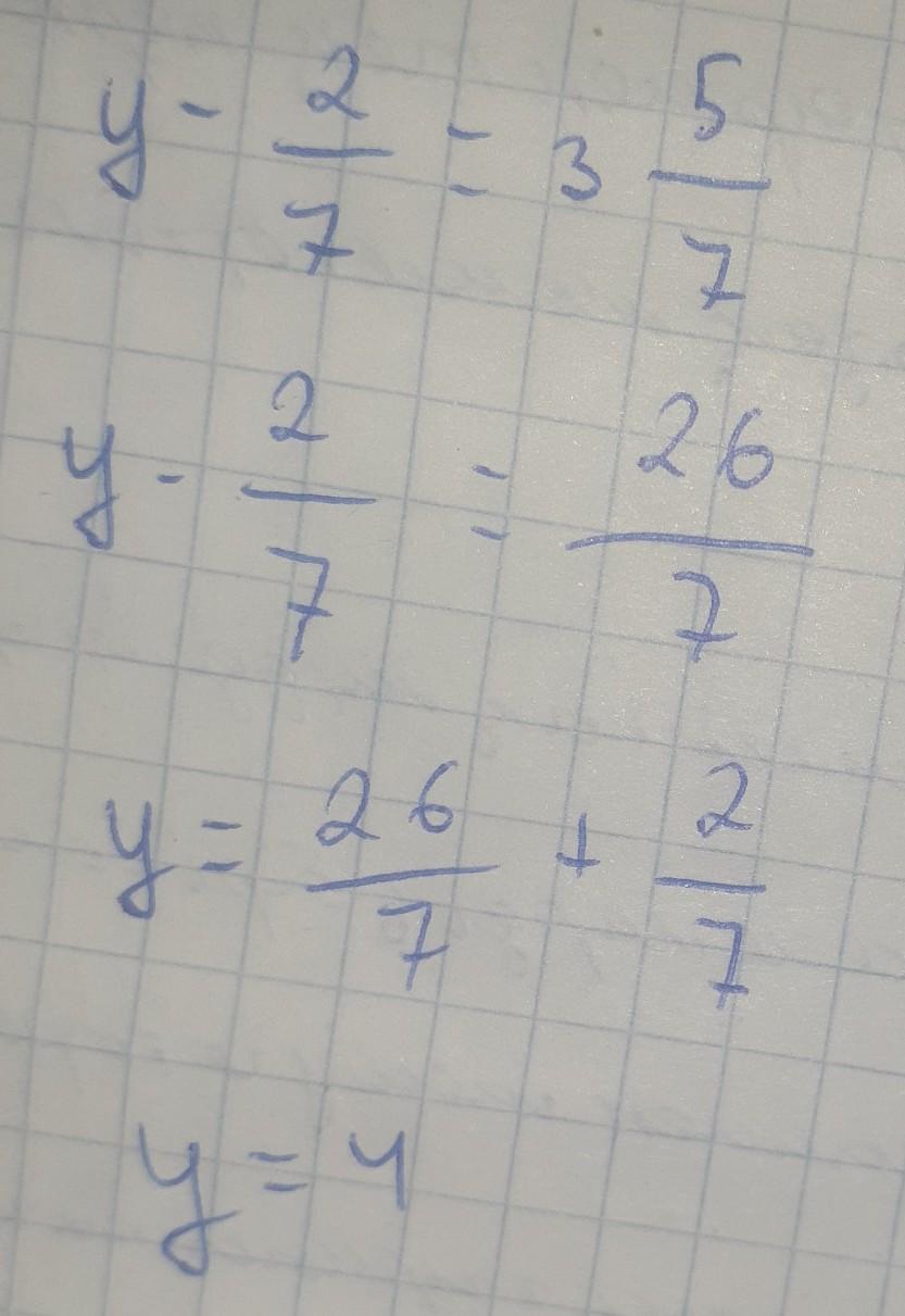 Решите уравнение y-2/7= 3 5/7