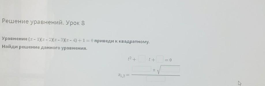 Уравнение (х - 1Хх – 2Xх - 3Xх – 4) +1 = 0 приведи к квадратному.