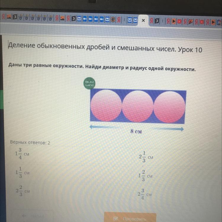 Чтобы найти диаметр одной окружности, нужно 8 ÷ 3