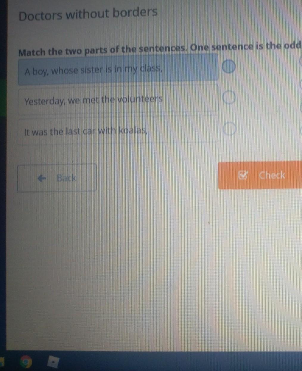 Match the two parts of the sentences. One sentence is the odd one out.