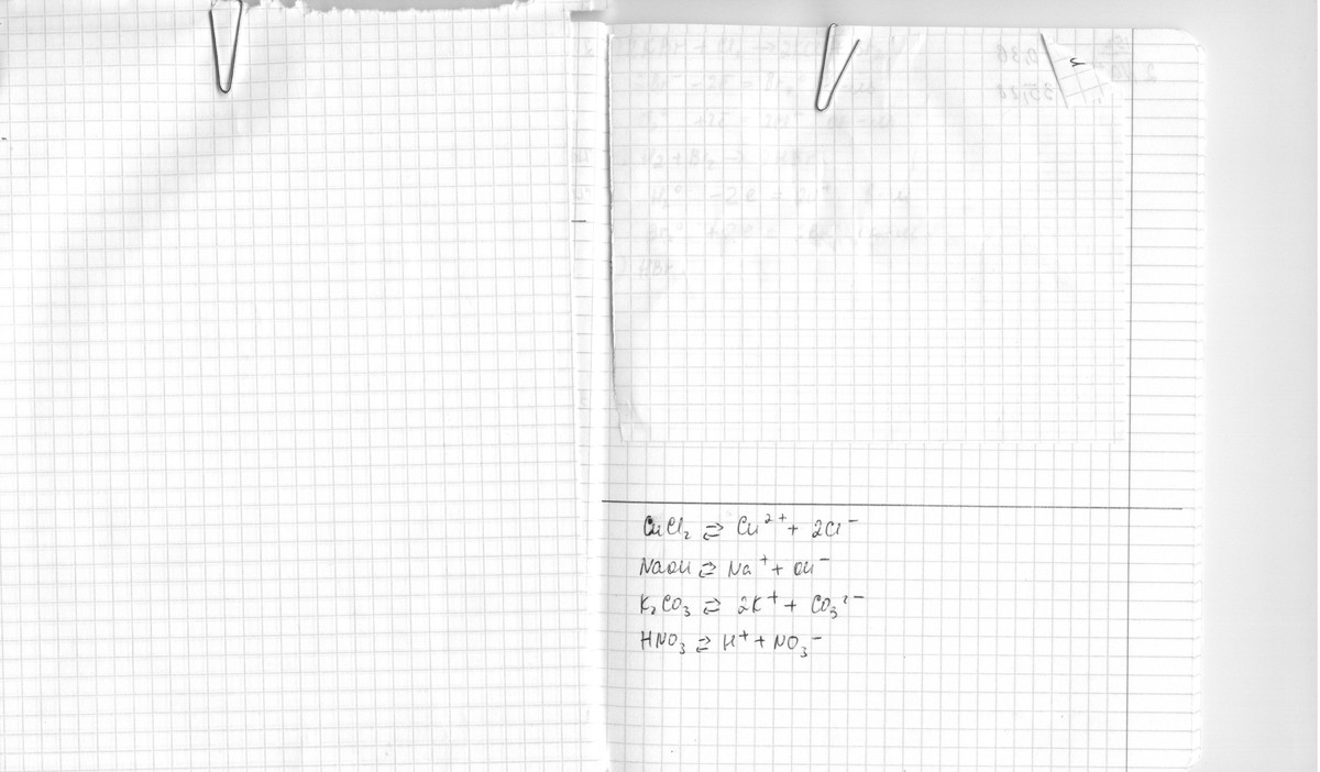Какие ионы образуются при диссоциации следующих веществ: хлорида меди (2), гидроксида натрия, карбоната калия, азотной кислоты.