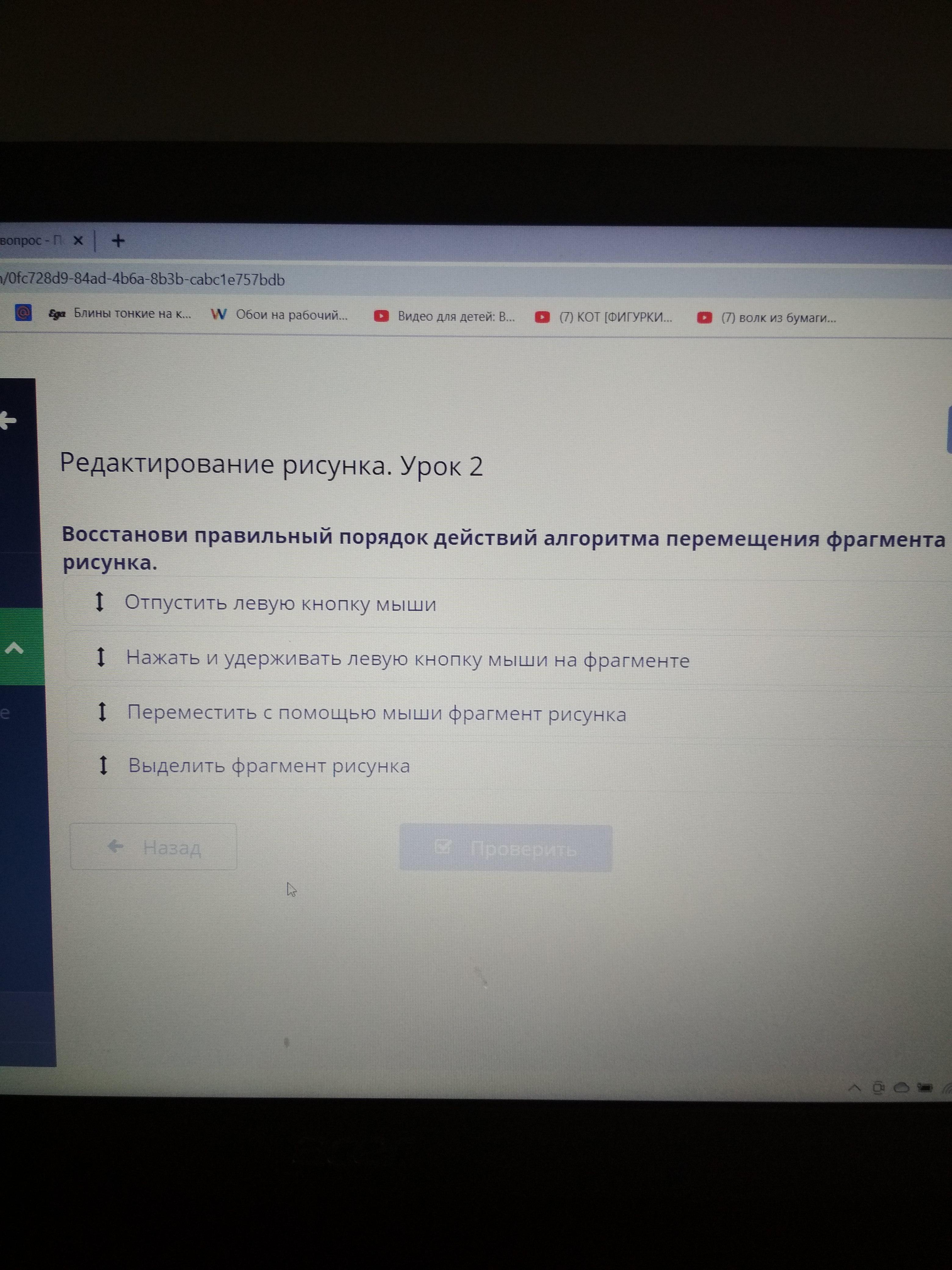 Востанови правильный порядок действий алгоритма перемещения фрагмента рисунка. Помогите пожалуйста разобраться