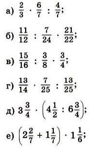 е) (2 2/7+1 1/7)* 1 1/6= 3 3/7* 1 1/6= 24/7* 7/6= 4/1*1/1= 4