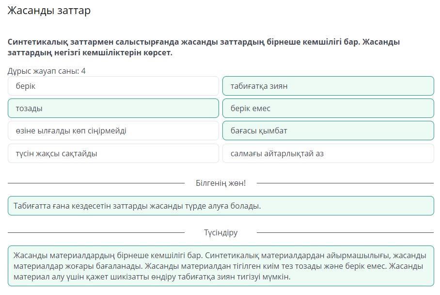 Синтетикалық заттармен салыстырғанда жасанды заттардың бірнеше кемшілігі бар. Жасанды заттардың негізгі кемшіліктерін көрсет.