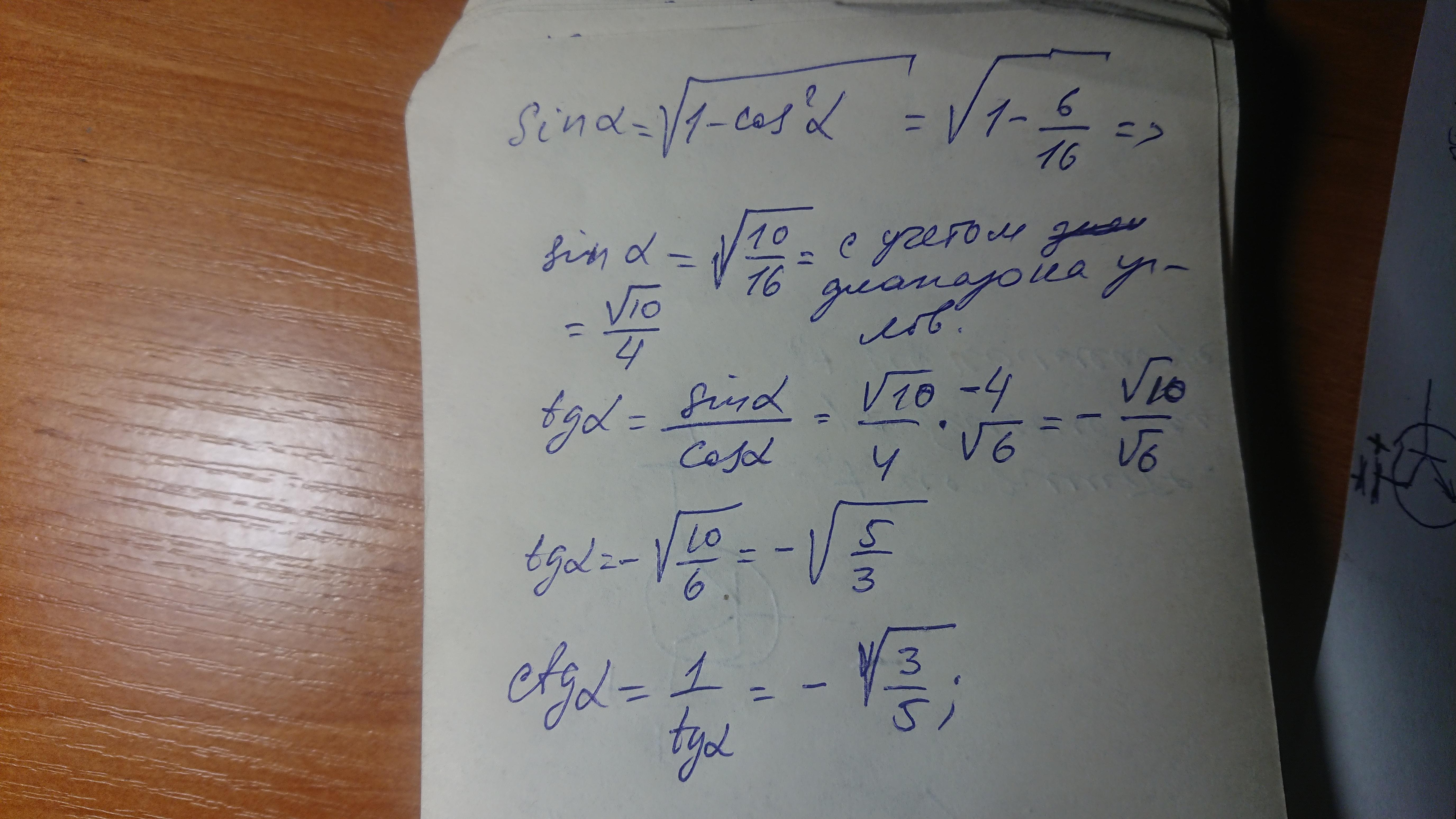 cos a = -корень из 6/4 и а принадлежит (п/2;п)
