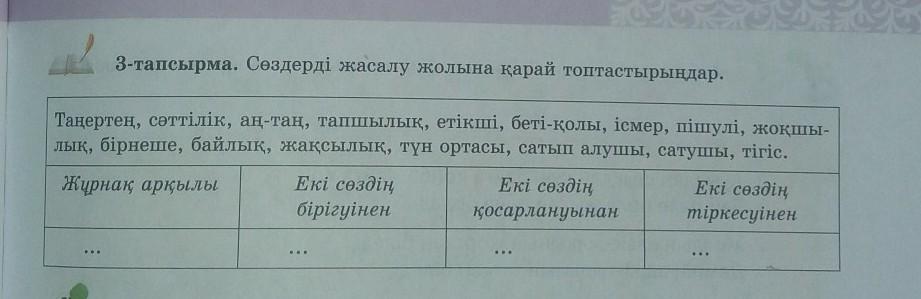 - Екі сөздің қосарлануынан [] аң-таң,беті-қолы[]