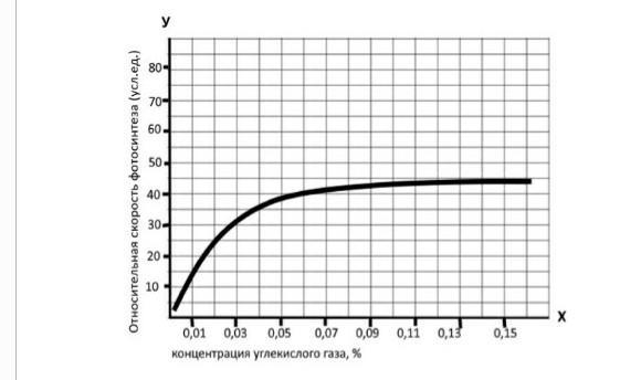 Посмотрите на график и опишите, как концентрация углекислого газа влияет на скорость фотосинтеза.