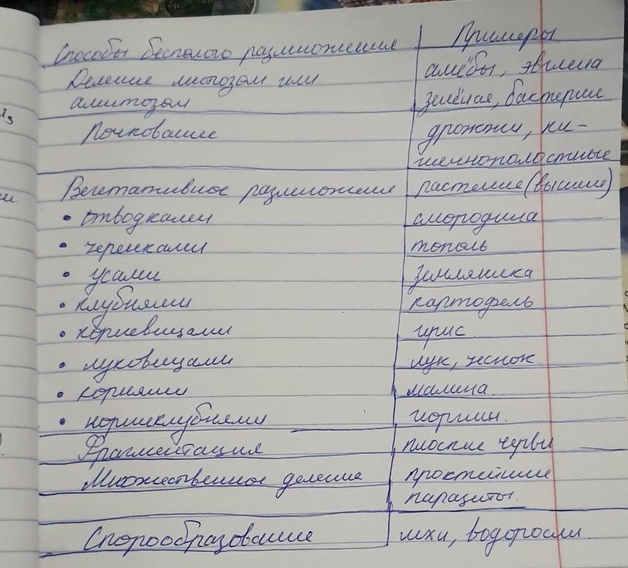 Составить cхему по "Бесполое размножение организмов" 9 класс ( написать способы бесполого размножения и примеры организмов + в схеме, где будет написано вегетативное размножение, перечислить способы вегетативного размножения) В чём заключается биологическая сущность бесполого и полового размножения?