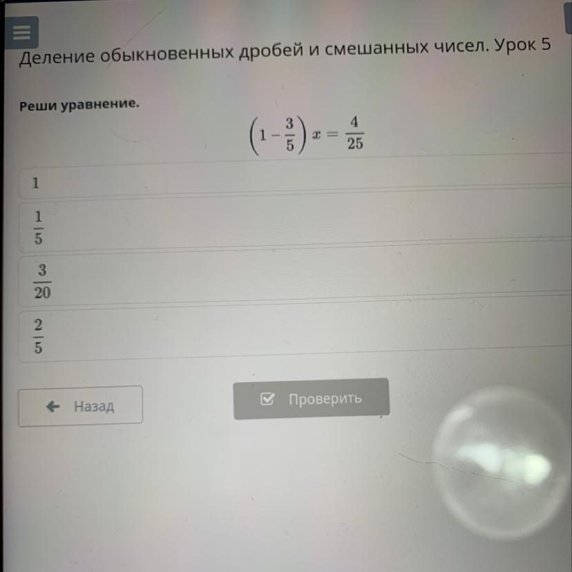 Деление обыкновенных дробей и смешанных чисел.Урок 5 Реши уравнение.