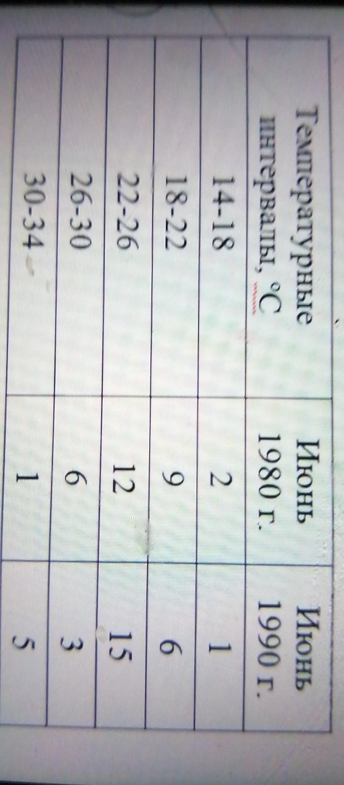 В таблице приведены данные по температуре в городе N в июне 1980 г. и в июне 1990 г. В ней отражена информация об ежедневных наблюдениях.
