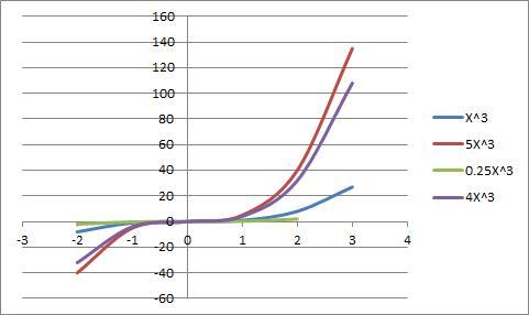 1) у = х³, у = 5х³, у = 1/4х³, у = 4х³