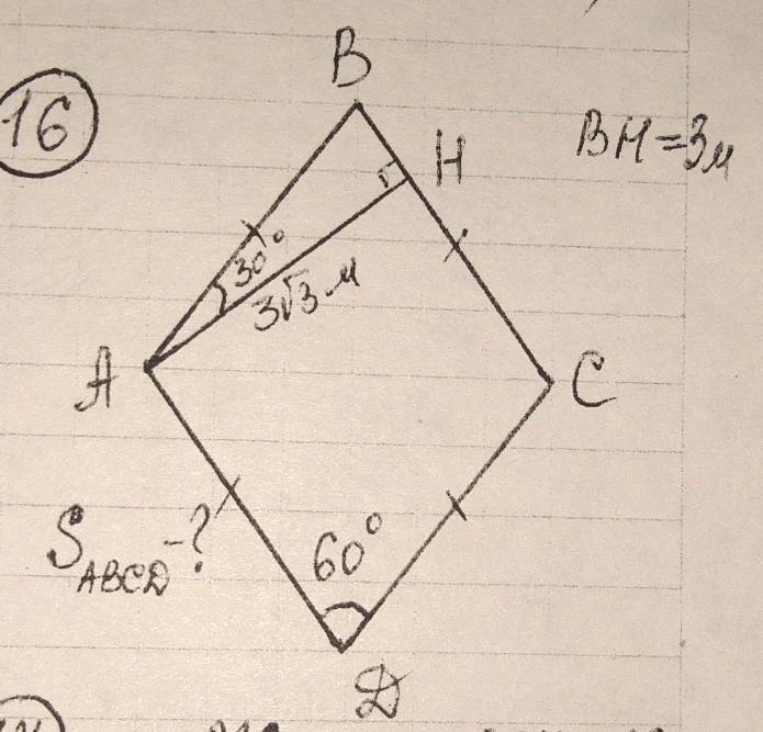 сторона ромба 6, высота известна