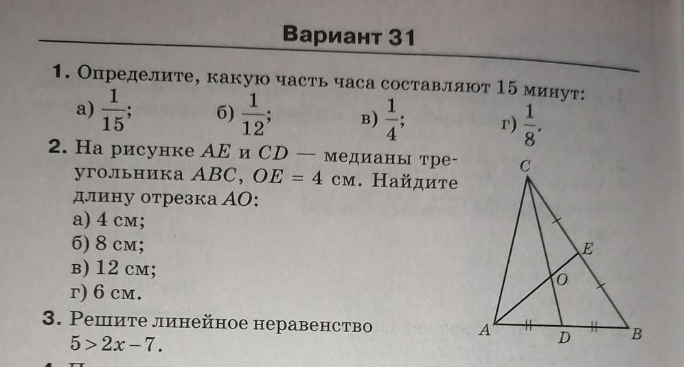 2) вроде б) 8 см, так как точка пересечения медиан делит их в соотношении 2 к 1, тип 2АО = 1ОЕ