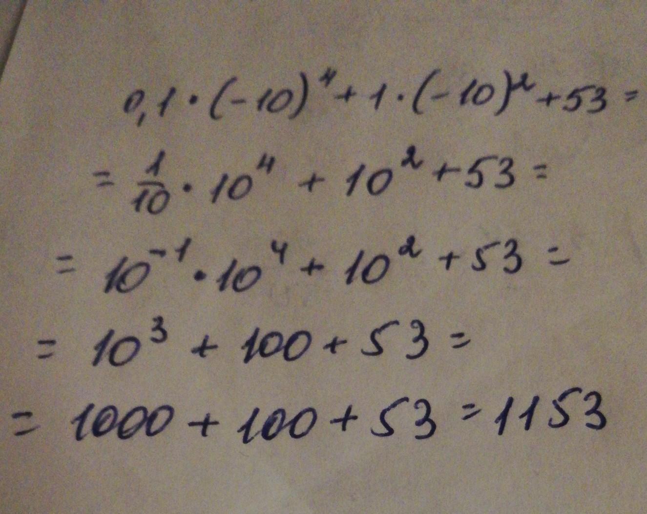 0,1 * (-10)⁴ + 1 * (-10)² + 53 = 0,1 * 10000 + 1 * 100 + 53 = 1000 + 100 + 53 = 1153