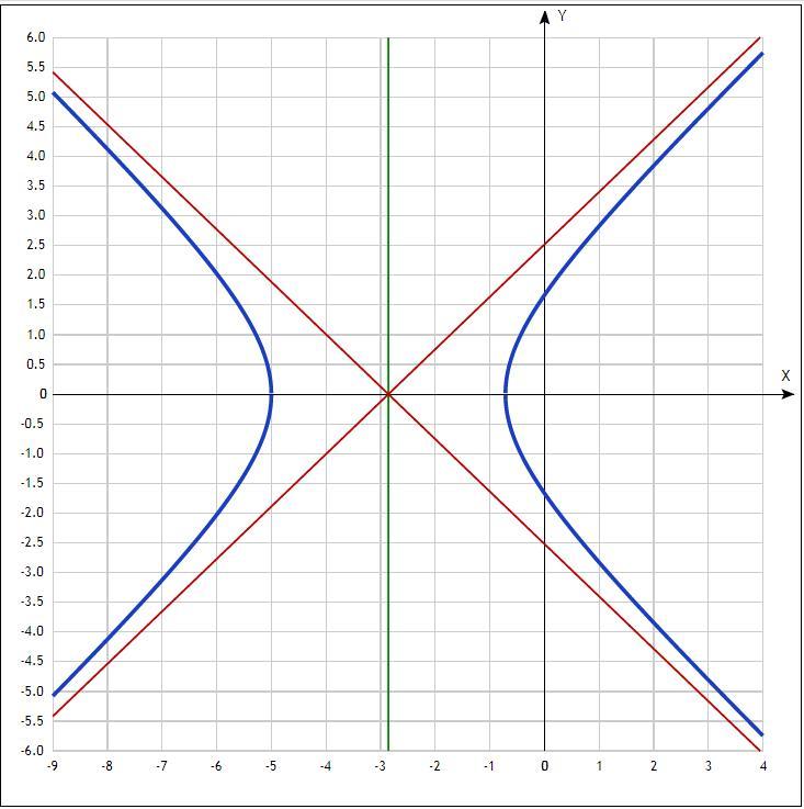 Так как эксцентриситет е = (4/3), то есть больше 1, то заданная кривая - гипербола.