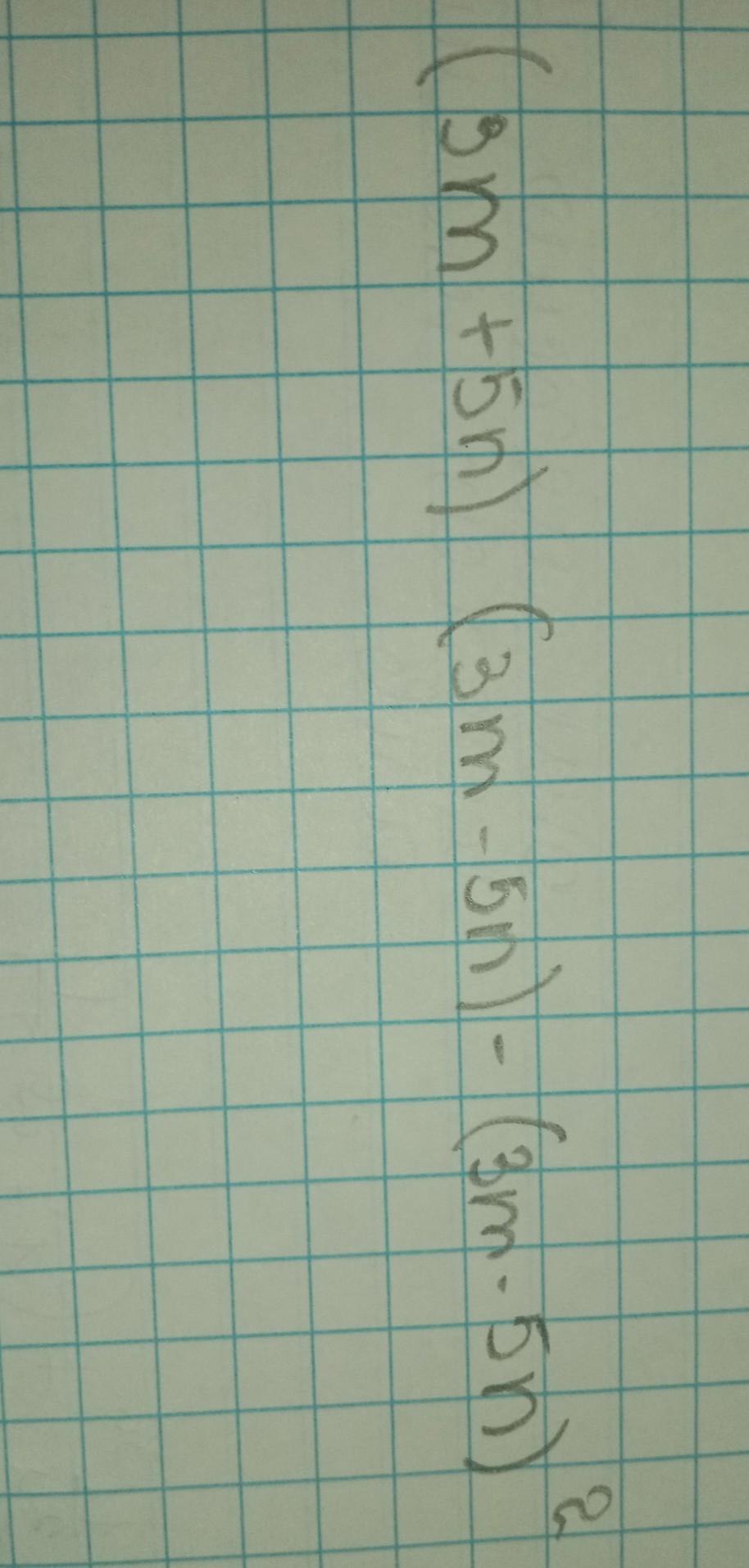 (3m + 5n)(3m - 5n) - (3m * 5n)^2 = 9m^2 - 25n^2 - (15mn)^2 =